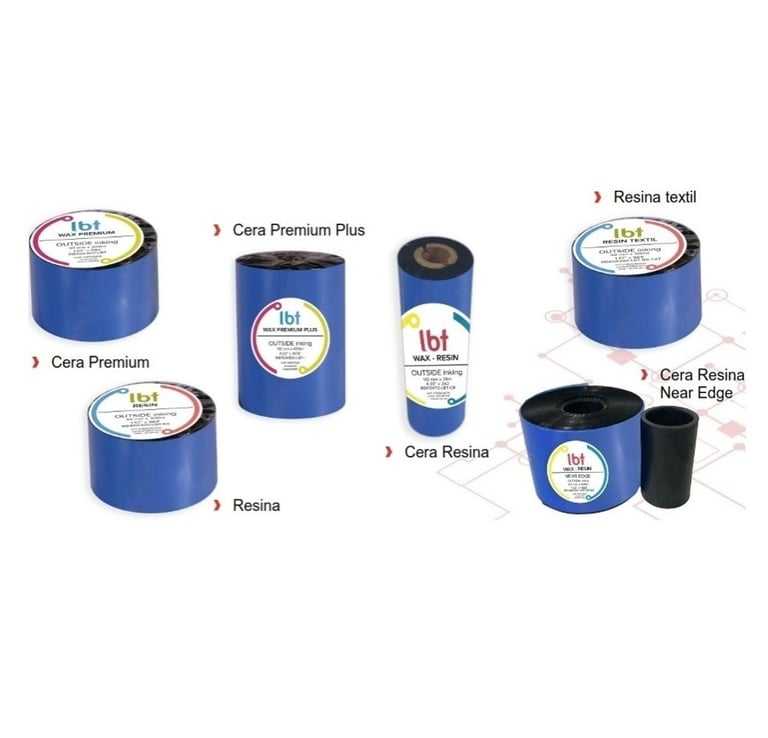 Ribbon de cera (wax), resina (resin) y cera-resina de diferentes tamaños.