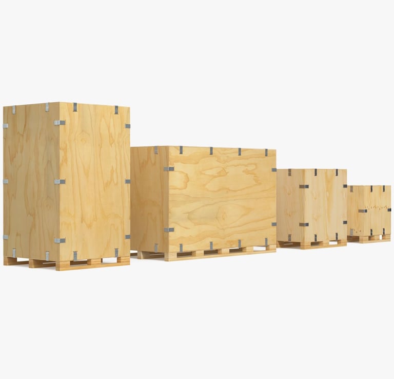 Fabricación de Crates de madera acorde a las necesidades del cliente, con tratamiento térmico HT de exportación, MX-442